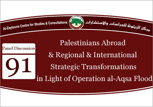 Al-Zaytouna Centre conducts strategic and futuristic academic studies on the Arab and Muslim worlds. It focuses on the Palestinian issue and the conflict with Israel as well as related Palestinian, Arab, Islamic and international developments.